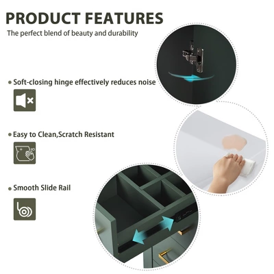 - 【Ample Storage Space】Includes three drawers and a cabinet for organizing toiletries, cleaning supplies, and more.