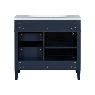 Enhance your bathroom with this 36″W Modern Bathroom Vanity that combines sleek design with practical storage. Featuring a top sink with a streamlined, glossy surface, this vanity creates a refined look, perfect for modern interiors. The storage cabinet is equipped with two spacious drawers and a unique tip-out drawer, providing smart storage solutions for organizing toiletries, makeup, and accessories. Its sturdy construction ensures lasting durability, while the smooth, moisture-resistant finish keeps it looking pristine. Ideal for both compact and larger spaces, this vanity offers an effortless blend of style and functionality, making it an essential addition to your bathroom setup.