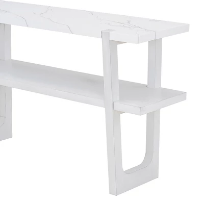 Elevate your entryway with the Retro Elegant Console Table, a striking blend of sophistication and functionality. Measuring 54 inches wide, this console table features a luxurious marble-effect top that exudes timeless elegance and provides a durable surface for decorative accents. Its classic retro design is complemented by versatile storage solutions, including a spacious lower shelf for hidden storage. The combination of a sleek finish and functional design makes it an ideal addition to any modern or traditional space. Whether used to display cherished items or to organize everyday essentials, this console table adds a touch of refined charm to your home.