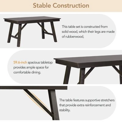 - 【Stable Structure】This table set is made of solid wood, and the table legs are made of rubberwood, which is a strong and durable material that provides excellent support for tables and chairs. The table comes with support stretchers for extra reinforcement and stability. The stretcher connects the legs to provide an extra layer of support, adding to the table’s sturdiness and durability.