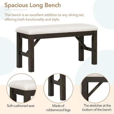 - 【Spacious Bench】The bench is made of rubber wood legs, the whole is sturdy and durable, and the soft cushion seat provides a comfortable ride. A stretcher at the bottom of the bench provides extra support and stability, ensuring it can accommodate people of all sizes. A great addition to any dining table, this bench combines functionality and style.