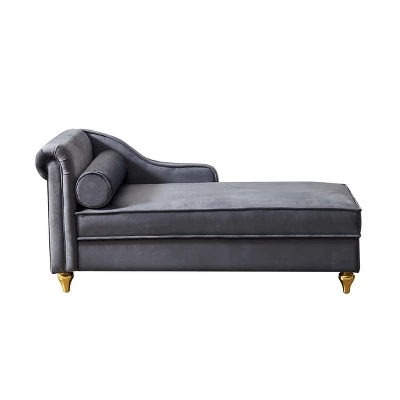 With soft velvet upholstery, gold metal legs and round throw pillows, this chaise lounge brings an elegant, classic feel to your room. Whether you’re reading, taking a nap, or just thinking, this will be your favorite place to relax. There is also thoughtful storage space underneath this recliner for easy storage and organization. This will be the perfect addition to your room decor.