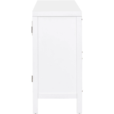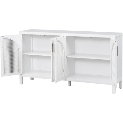 Featuring shaped faux rattan door panels, convenient metal pulls, and a linear frame, this sideboard 4-door cabinet can be placed in your living room, study, and more, making it an ideal addition to any room in your home. Ample storage space meets your storage needs. The details of the entire cabinet show the simplicity and elegance of the cabinet. The classic cabinet is easy to match with your home style without being obtrusive.