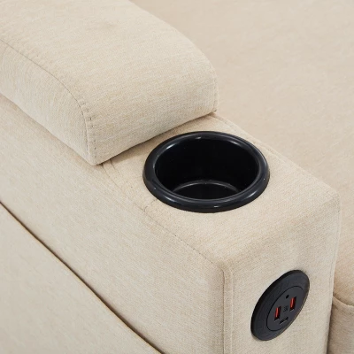 - 【Convenient Features】Both armrests feature magazine pockets and cup holders, with an integrated USB port for charging devices.