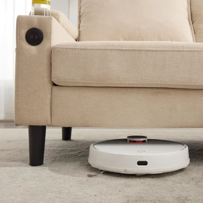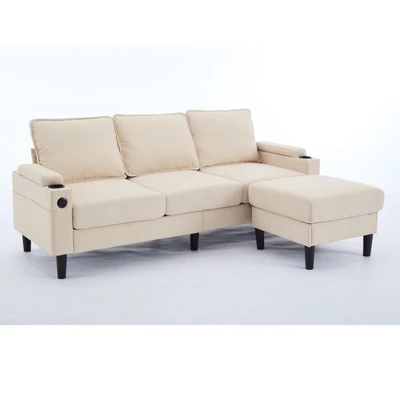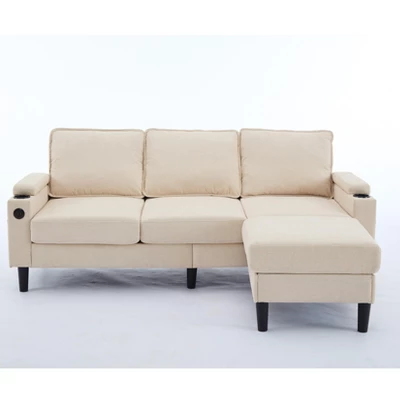 Upgrade your living space with our versatile 4-seat L-shaped upholstered Sectional Sofa. This stylish and functional sofa features a removable storage ottoman, allowing you to arrange it according to your needs. Both armrests come equipped with convenient magazine pockets and cup holders, perfect for keeping your essentials within reach. Additionally, a built-in USB port ensures your devices stay charged. Designed with higher legs, this sofa offers a 5.9-inch clearance underneath, providing ample space for a robotic vacuum to navigate freely. Constructed with a sturdy Pine wood frame and durable springs, it is filled with thick, high-density foam for exceptional comfort. Upholstered in soft, breathable linen fabric, this sectional is as comfortable as it is practical.