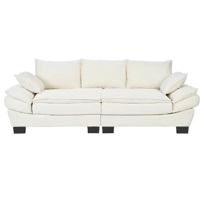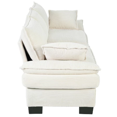 Boasting a clean, stylish design with a balanced and elegant structure, this sofa makes it a stunning addition to any space. It effortlessly complements various interior styles, enhancing the beauty of your room. Made from high-quality corduroy fabric, it offers a soft touch while ensuring durability and resistance to wear. The spacious seating, combined with a spring bag and sponge filling, delivers unmatched comfort. The armrests and cushions are zip-fastened to prevent shifting, and the sofa includes two additional pillows for extra support. Constructed with a sturdy poplar wood frame, this sofa guarantees long-lasting use.