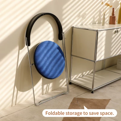 This mid-century modern folding chair features a striking contemporary design, with clean lines and a blend of expressionist and industrial elements for an eye-catching look. Its chrome cantilever structure enhances modern appeal, fitting well in various interiors. Functionally, it folds for easy storage, saving space. The high-density sponge-filled fabric seat offers comfort and permeability, and it requires no assembly, suiting dining rooms, kitchens, and more. Crafted from chrome steel with solid metal electroplating, the frame is durable. The hand-woven wooden backrest adds both support and charm. In summary, this chair combines modern style and practicality, with durable materials, folding convenience, and easy setup, making it a versatile addition to any space.