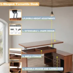 L-Shaped Office Desk Height Adjustable Executive Desk With Storage, Gaming Desk Writing Desk Work Desk, Walnut – ModernLuxe