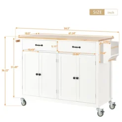 ModernLuxe 54.3″ Mobile Kitchen Island with 4-Door Cabinet and Solid Wood Top