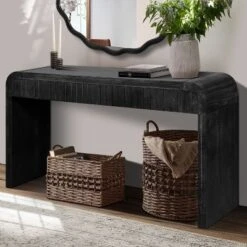 ModernLuxe 53.9″ Modern Entryway Console Table with Oval Marble-Style Top and Solid Wood Curved Legs