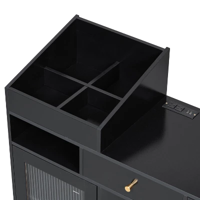 - 【Convenient Charging Setup】Featuring a built – in charging station with two outlets and two USB ports, this vanity set enables you to keep your hair dryer, mobile phone, curling iron, and other devices within easy reach, streamlining your morning routine.