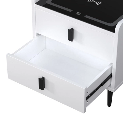 A well-designed and well-organized bedroom fosters tranquility at the beginning and end of each day. After a long day, what could be easier than resting your cell phone atop the built-in wireless charger on the Nightstand? Once your device begins to charge, you can start to unwind with a good book. Two spacious drawers also provide ample storage for all other nighttime essentials. This nightstand fits in many locations throughout your home and also can be used as an end table, or placed inside the closet to create extra storage. It offers an excellent arrangement for your room to keep all things organized and free of clutter.