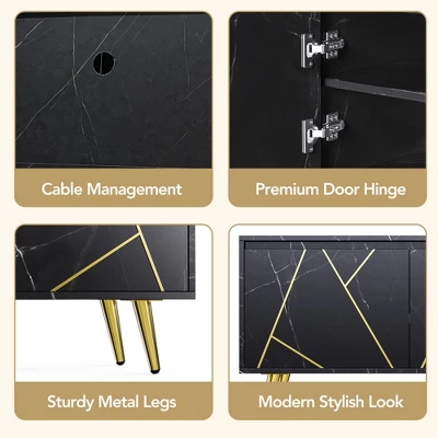 - [Upgrade Anti-Rust Craft & Silent Design] We use anti-rust cabinet door pins to prolong the service life of the product. At the same time, the legs of the TV cabinet are also electroplated to prevent metal oxidation. This process not only improves the wear resistance of the TV cabinet legs, but also makes the entertainment center more beautiful.