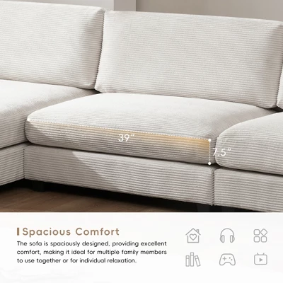 Elevate your home lounging experience with the ModernLuxe oversized corduroy sectional. This premium L-shaped sofa combines sophisticated mid-century textures with high-tech modern amenities, creating a stunning centerpiece for your living room that prioritizes both style and relaxation.