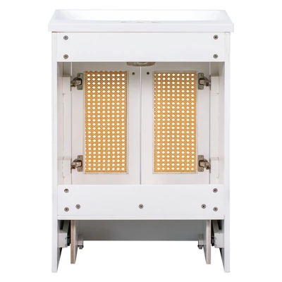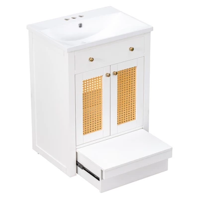 Elevate your bathroom with the ModernLuxe 24-inch Vanity, a perfect blend of classic elegance and family-centric innovation. This sophisticated piece features beautiful rattan-inlaid doors that provide a textured, coastal-modern aesthetic while offering a practical solution for households with children through its unique integrated step design.