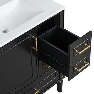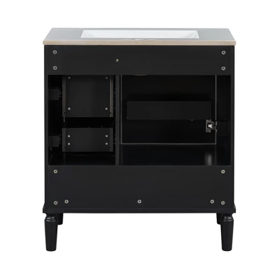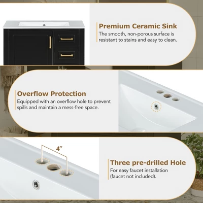 - Materials: Solid Wood, MDF, Ceramic Sink, and Zinc Alloy Hardware