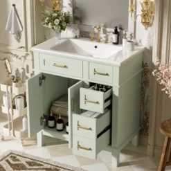 Elevate your bathroom’s aesthetic and functionality with the ModernLuxe 30-inch Bathroom Vanity. Designed specifically for smaller spaces and modern homes, this premium free-standing cabinet combines high-end materials with thoughtful storage solutions. Whether you choose the sophisticated green or classic white finish, the painted surface adds a layer of refinement that complements any contemporary decor while providing a durable, moisture-resistant shield for daily use.