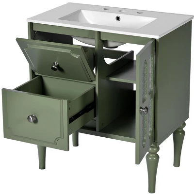 Infuse your bathroom with the timeless appeal of the ModernLuxe Retro-Style Vanity. This 30-inch freestanding unit combines a sophisticated green finish with vintage-inspired design elements, creating a centerpiece that is as functional as it is beautiful. Designed for those who appreciate both aesthetic character and modern convenience, this vanity transforms any bathroom into a curated sanctuary.