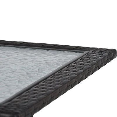 - Materials: Weather-resistant PE Wicker, Powder-Coated Iron, Water-Ripple Glass