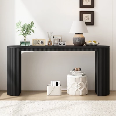 The ModernLuxe Curved Console Table is a masterclass in understated luxury, designed to serve as a stunning focal point in your entryway, living room, or study. Featuring a gracefully contoured silhouette and a distinctive vertical stripe pattern, this piece adds texture and movement to your home decor while providing the functional surface area you need for daily essentials and decorative accents.