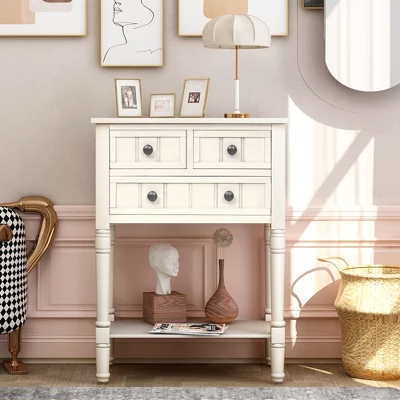 For a great and versatile piece of furniture, look no further than the Owings Console Table from ModernLuxe™. This rustic console table with three drawers and a bottom shelf provides that extra storage space in your living room, home office, or bedroom. Whether you are looking for a functional and decorative hallway table or a sturdy alternative to a traditional TV stand, you won’t regret making room for this wood-framed console table in your home.