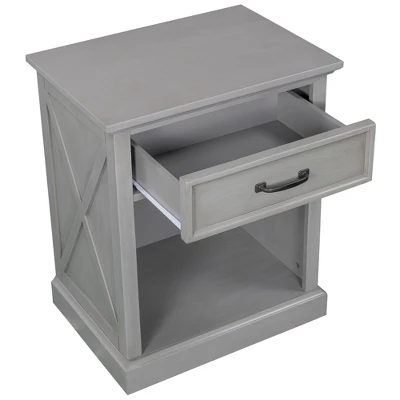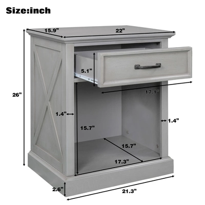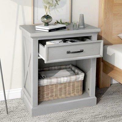 - Ample Storage Options: Includes a smooth-gliding drawer with a sleek metal handle and a large open lower shelf for books, tablets, or decorative bins.