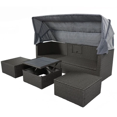 Elevate your backyard or patio with the ModernLuxe Rectangle Rattan Daybed, a versatile and stylish outdoor oasis designed for comfort and durability. Whether you are hosting a summer brunch or seeking a quiet spot to lounge, this premium set offers the perfect blend of luxury and functionality. Featuring a retractable canopy to shield you from the sun and a multifunctional lifting table, it transforms any outdoor area into a high-end retreat.