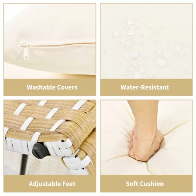 - All-Weather Construction: Built with a reinforced iron frame and hand-woven PE rattan that is UV-resistant and designed to withstand diverse weather conditions.