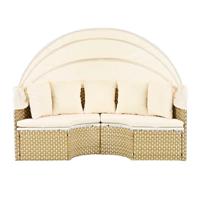 Elevate your backyard or poolside with the ModernLuxe Round Rattan Daybed collection. This versatile sectional set combines sophisticated design with functional luxury, offering a seamless transition from a spacious sunbed to an inviting social seating arrangement. Crafted for durability and style, it provides the perfect sanctuary for sunbathing or relaxing in the shade.