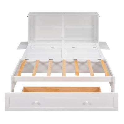 - [Storage Drawer and Shelf] There is a large drawer under the bed, you can choose to store bedding and other items. Small shelves on either side of the bed can be folded up or down.