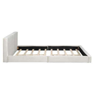 Enhance your bedroom a chic and modern appeal with this queen-size upholstered platform bed that features a thick padded headboard. The sturdy plywood and MDF frame is equipped with a reliable wooden slat system, ensuring excellent stability and safety. The entire frame is wrapped in soft velvet upholstery, offering unparalleled comfort and elegance. Easy to assemble, this bed comes in two color options to fit any space and design preference.