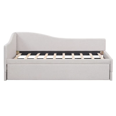 Maximize space without sacrificing style with our 3-in-1 Trundle Daybed, the ultimate solution for guest rooms, studios, or multi-functional spaces. Upholstered in premium linen blend fabric (available in elegant gray, beige, or blush), this piece transitions effortlessly from a compact twin daybed to a sprawling king-size sleeper using the smooth-rolling trundle. The L-shaped backrest offers ergonomic support for lounging, while the hydraulic lift system makes accessing the hidden trundle bed effortless. No box spring required – simply add your preferred mattresses (sold separately) to the included reinforced slat kit. Perfect for sleepovers, small apartments, or as a chic main bed in teen rooms.